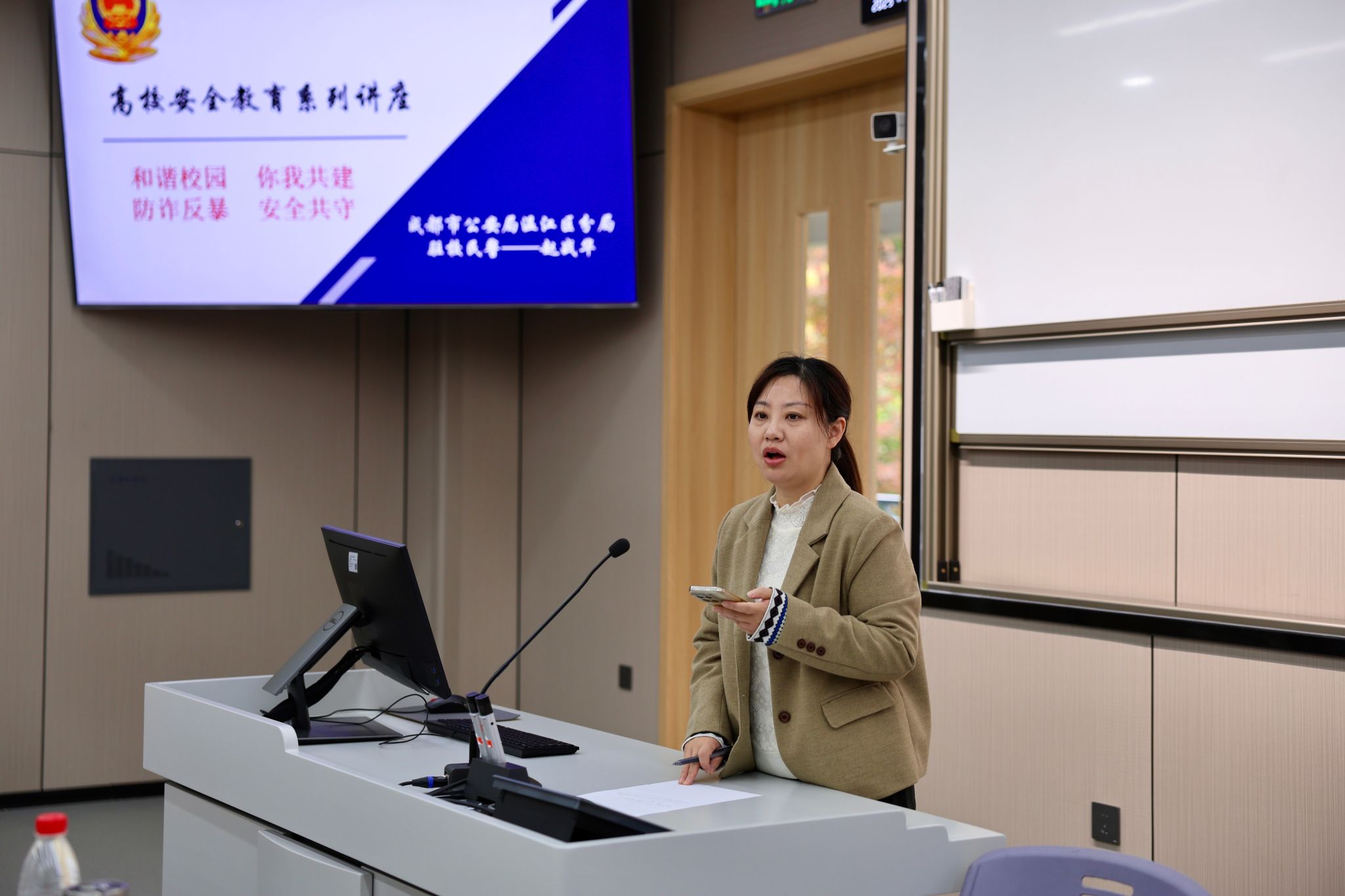 讲座最后,马蕾作总结发言。她希望同学们将所学安全知识内化于心、外化于行,时刻绷紧安全这根弦,增强自我防范的主动性与自觉性,积极传播安全理念,将安全意识真正融入校园生活的每一个角落。